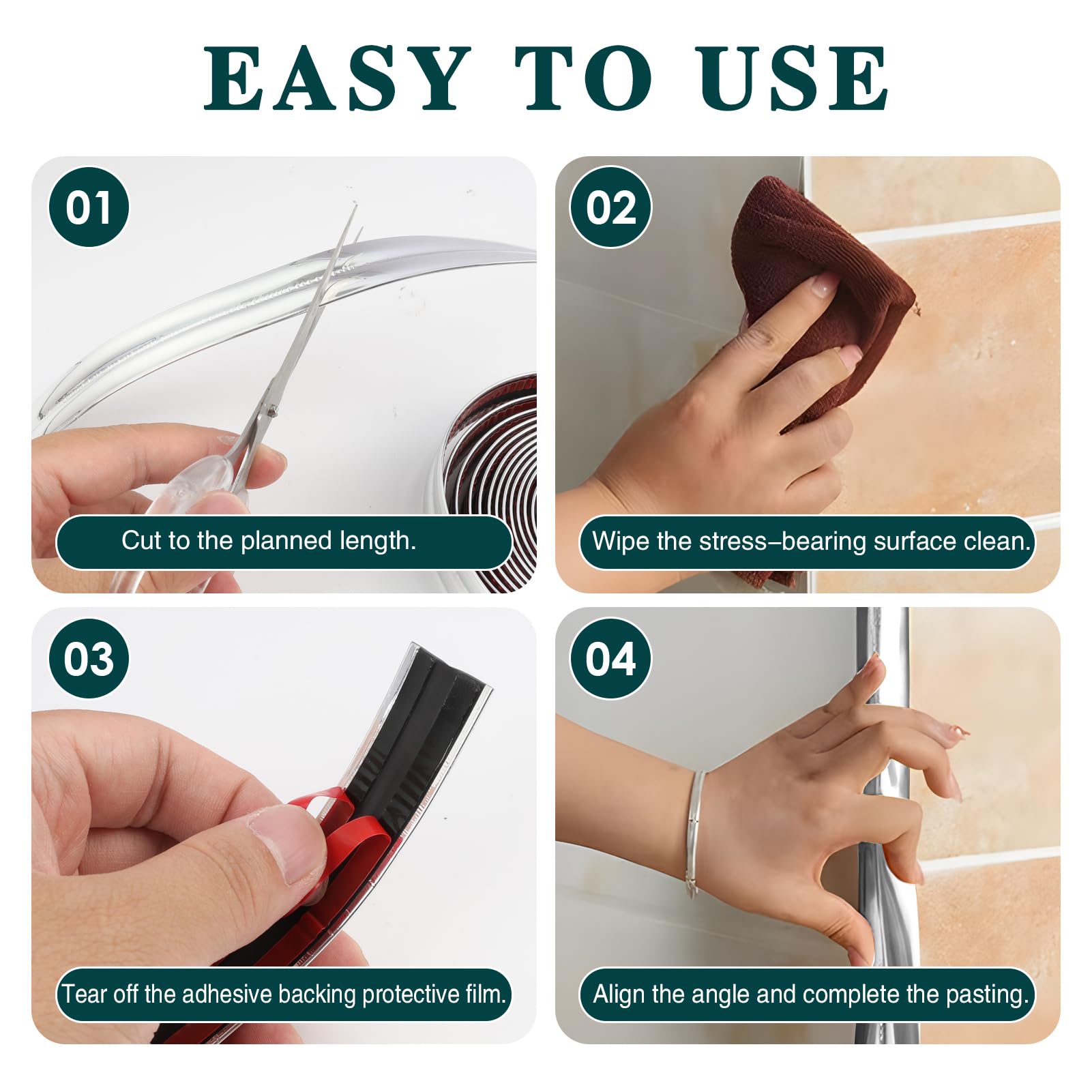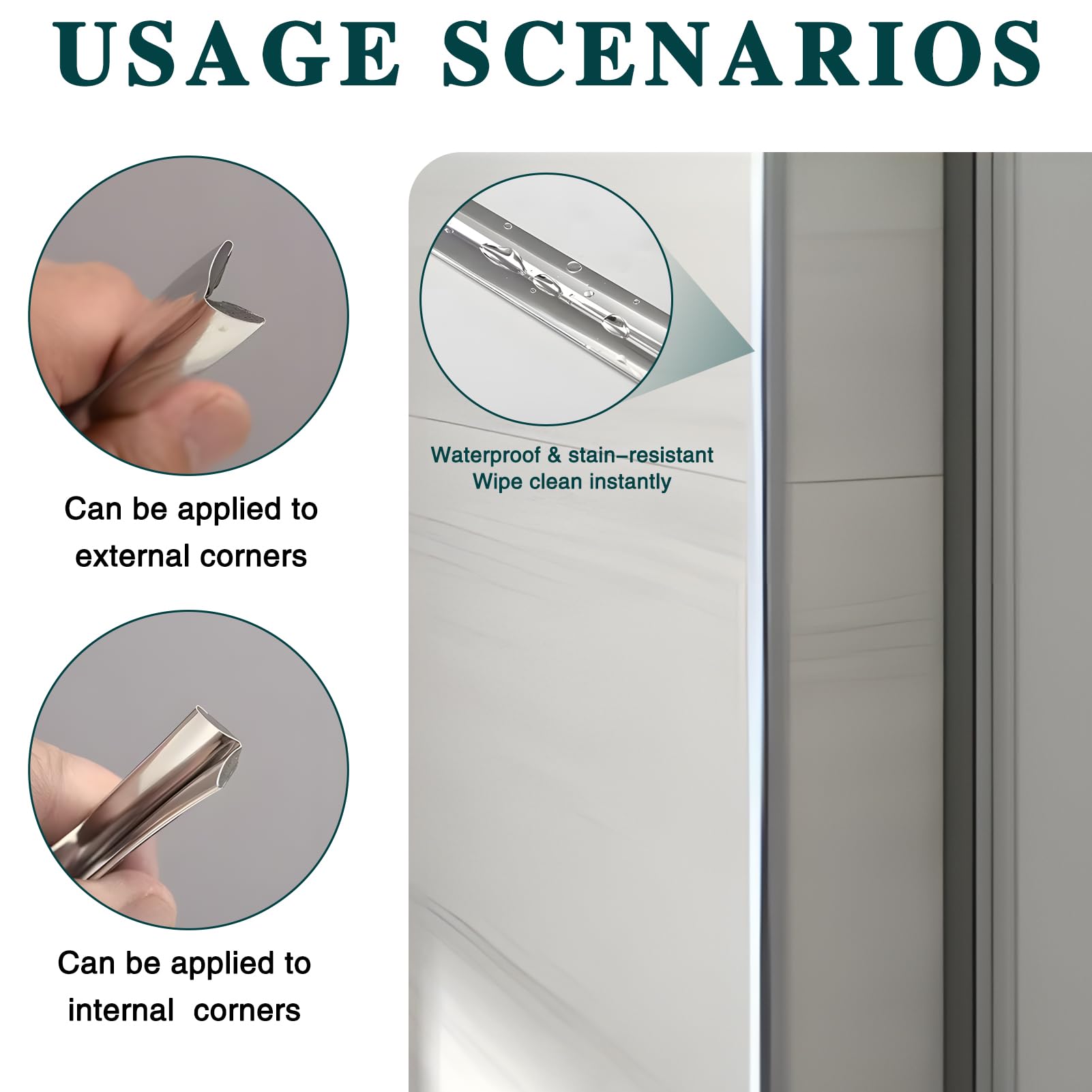 - Stylish and Functional Design: Available in an elegant silver finish, this molding trim not only serves a practical purpose by covering gaps and seams but also adds a touch of style to any room. It is perfect for use in bathrooms, bedrooms, living rooms, kitchens, and more, enhancing the overall aesthetic of your home. By using this trim, you can achieve a polished look that elevates your interior design without the need for extensive renovations.