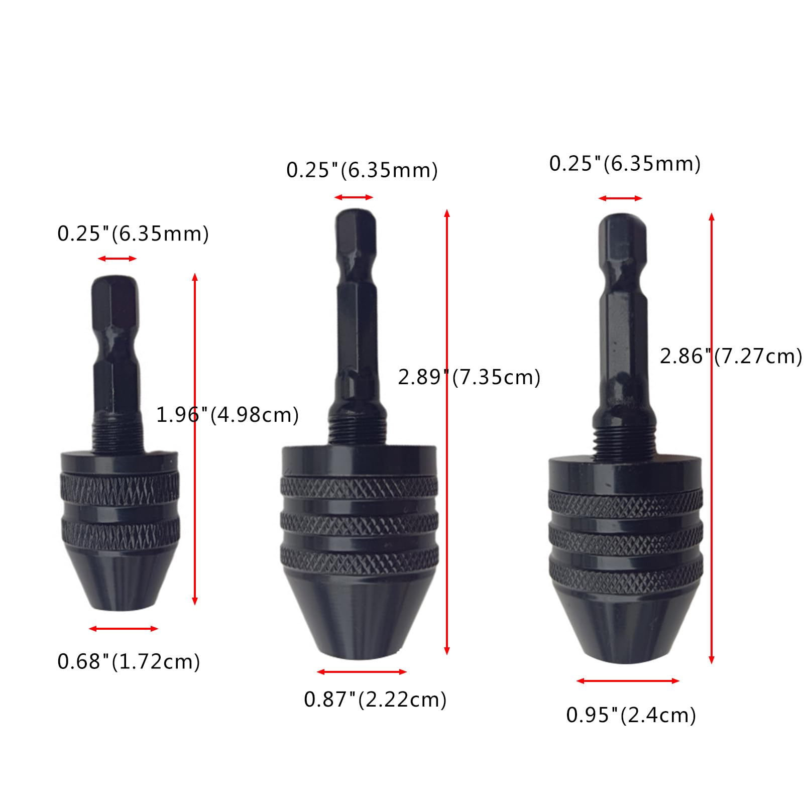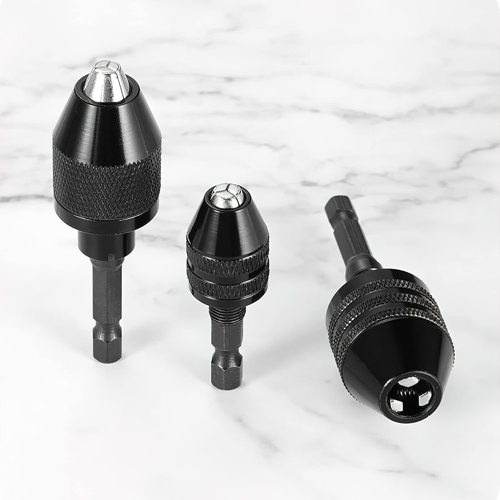 3 Pcs Keyless Drill Chuck Set, for 0.3-3.6mm 0.3-6.5mm 0.3-8mm Bit, 1/4 Inch Hex Shank Chuck Conversion Adapter for Air Screw Driver Manul Drill