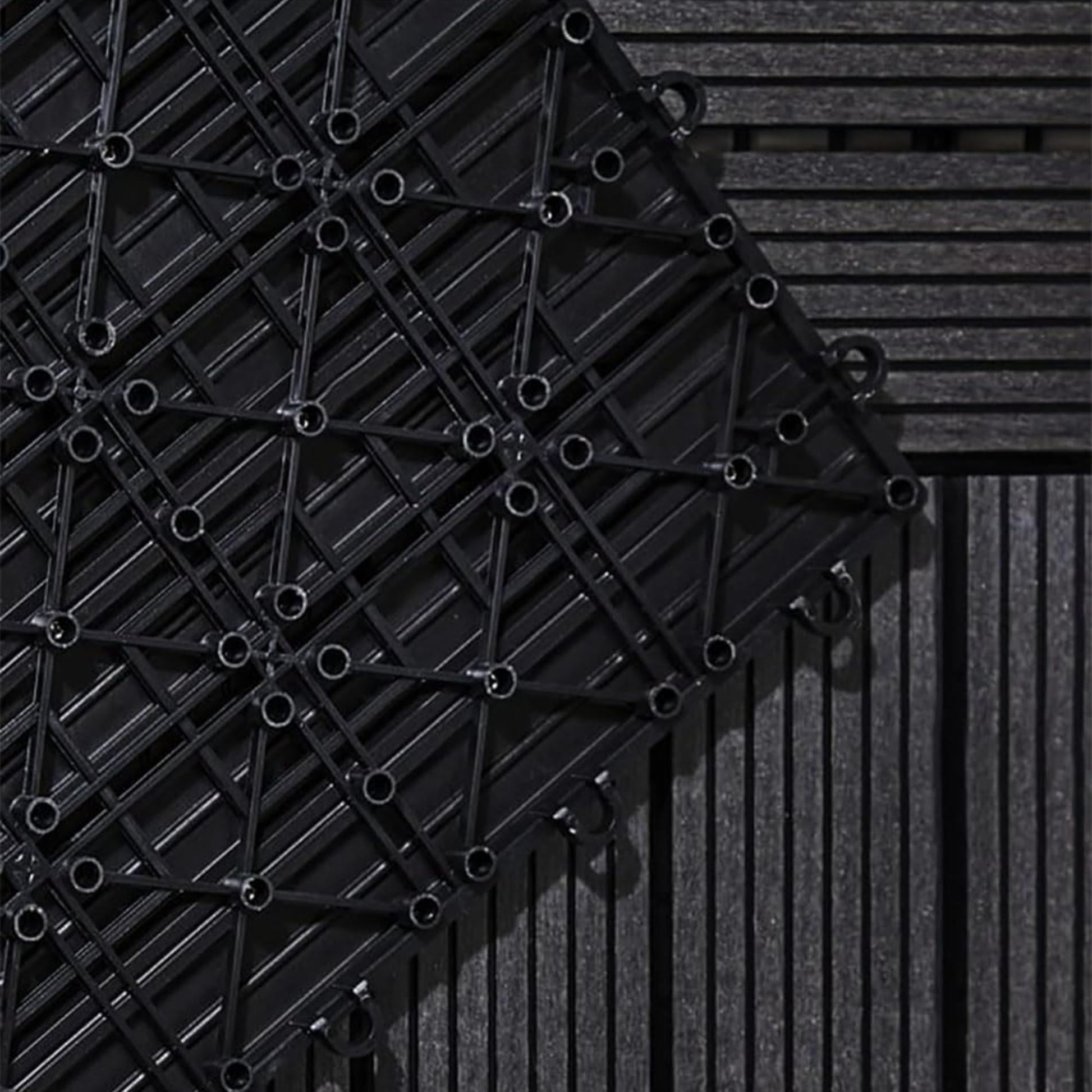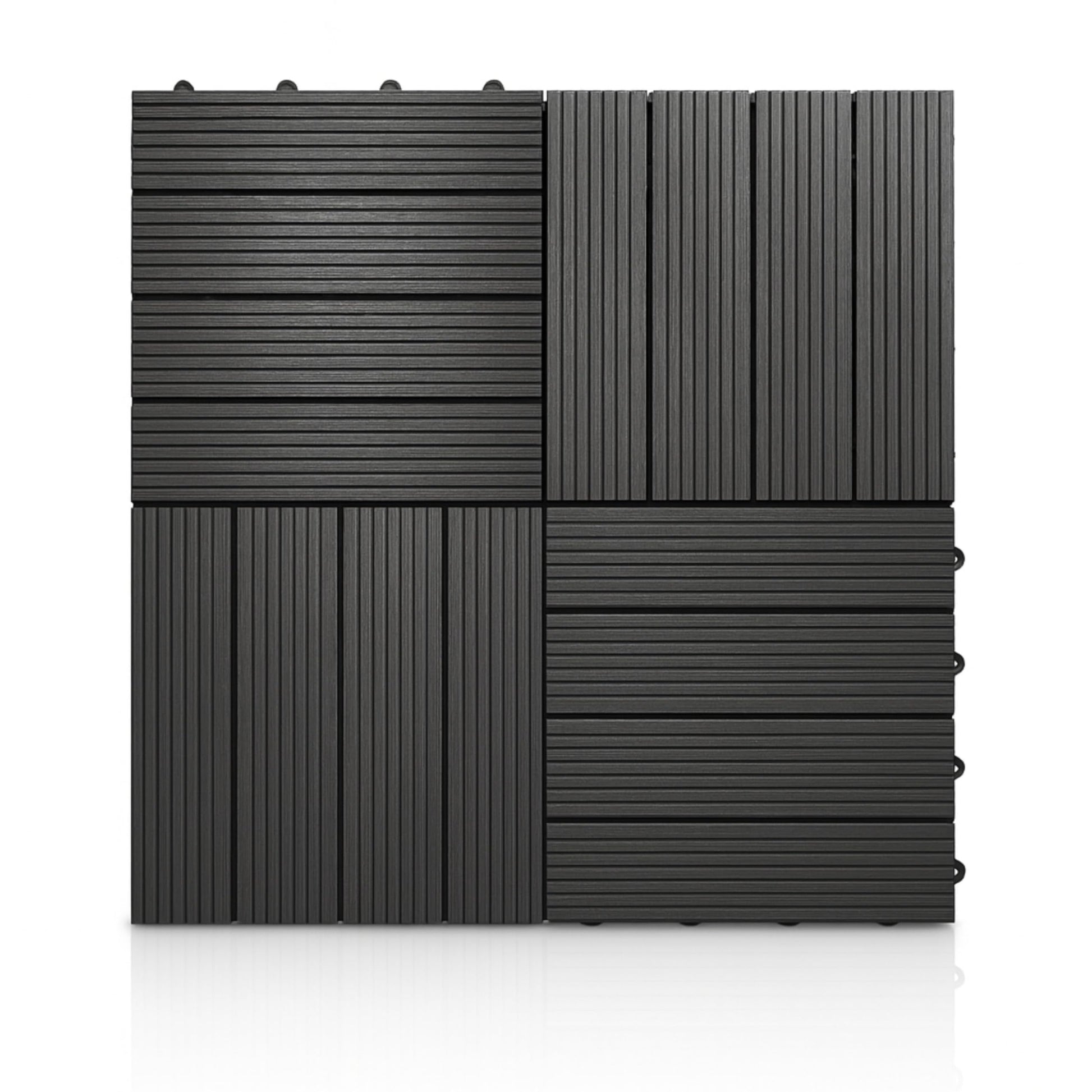 AAMEN Wood-Plastic Black Composite Decking Tiles Outdoor, Interlocking Non Slip Flooring Tile for Garden, Floor Patio Balcony Path Slab Deck Flooring Tub Surface Square 45cm (Pack 4)