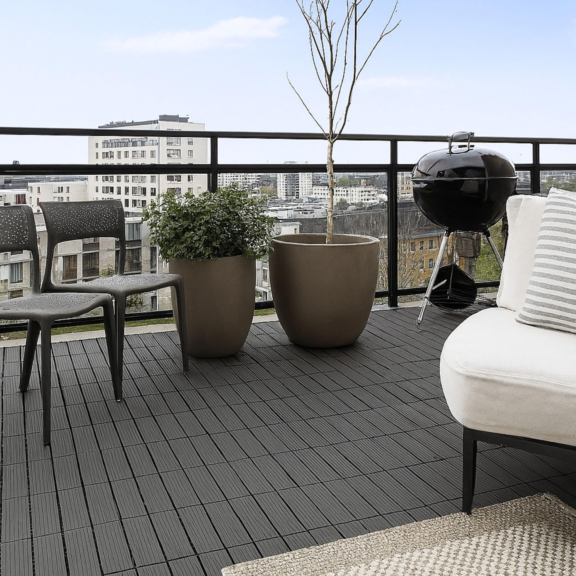 - Versatile Design: The sleek black color and square shape of the tiles complement various outdoor aesthetics, allowing for easy integration into different design schemes.