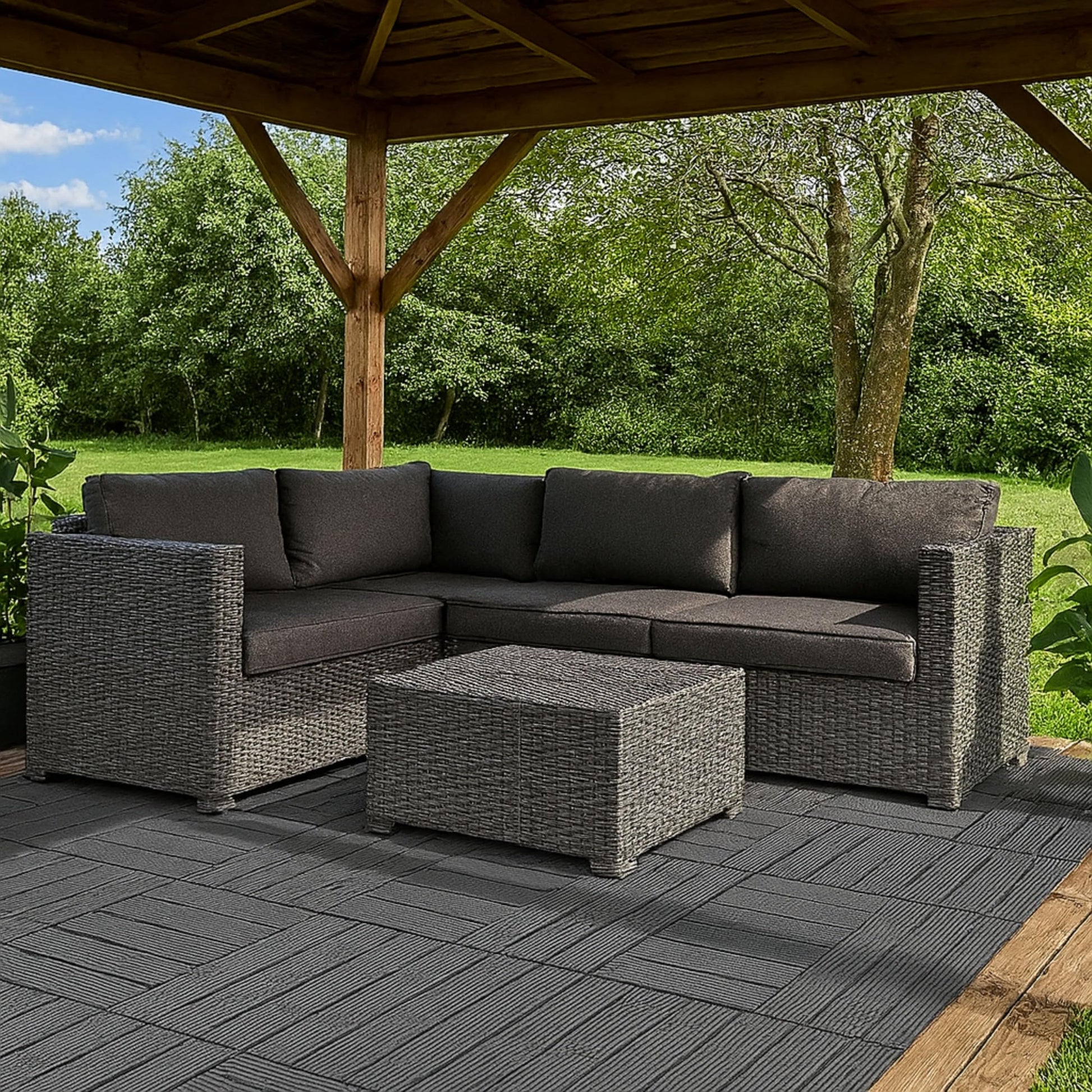- All-Weather Use: Suitable for year-round outdoor use, these decking tiles withstand various weather conditions, including rain, snow, and extreme temperatures, without warping or cracking.