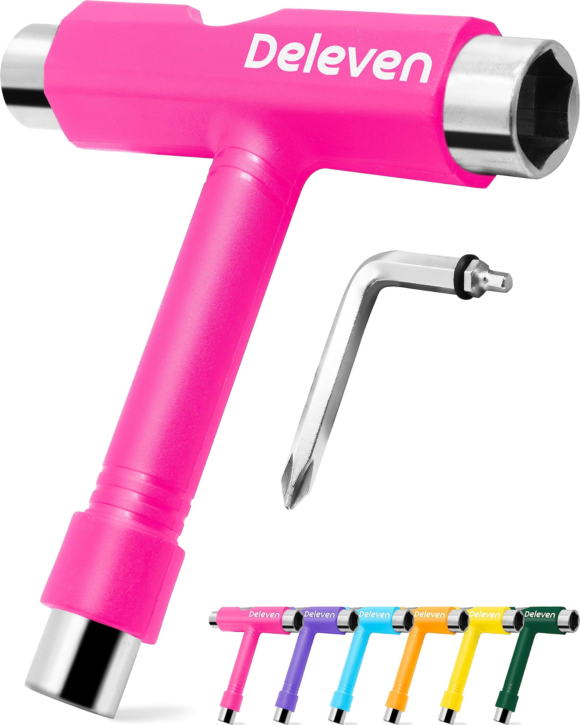 Deleven All-in-One Multi-Function Lightweight Portable Skate Tool with 2-in-1 Allen Wrench & Phillips Head Screwdriver - Adjust Roller Skates, Longboards, Skateboards, Quads, Wheels, Trucks & Kingpin