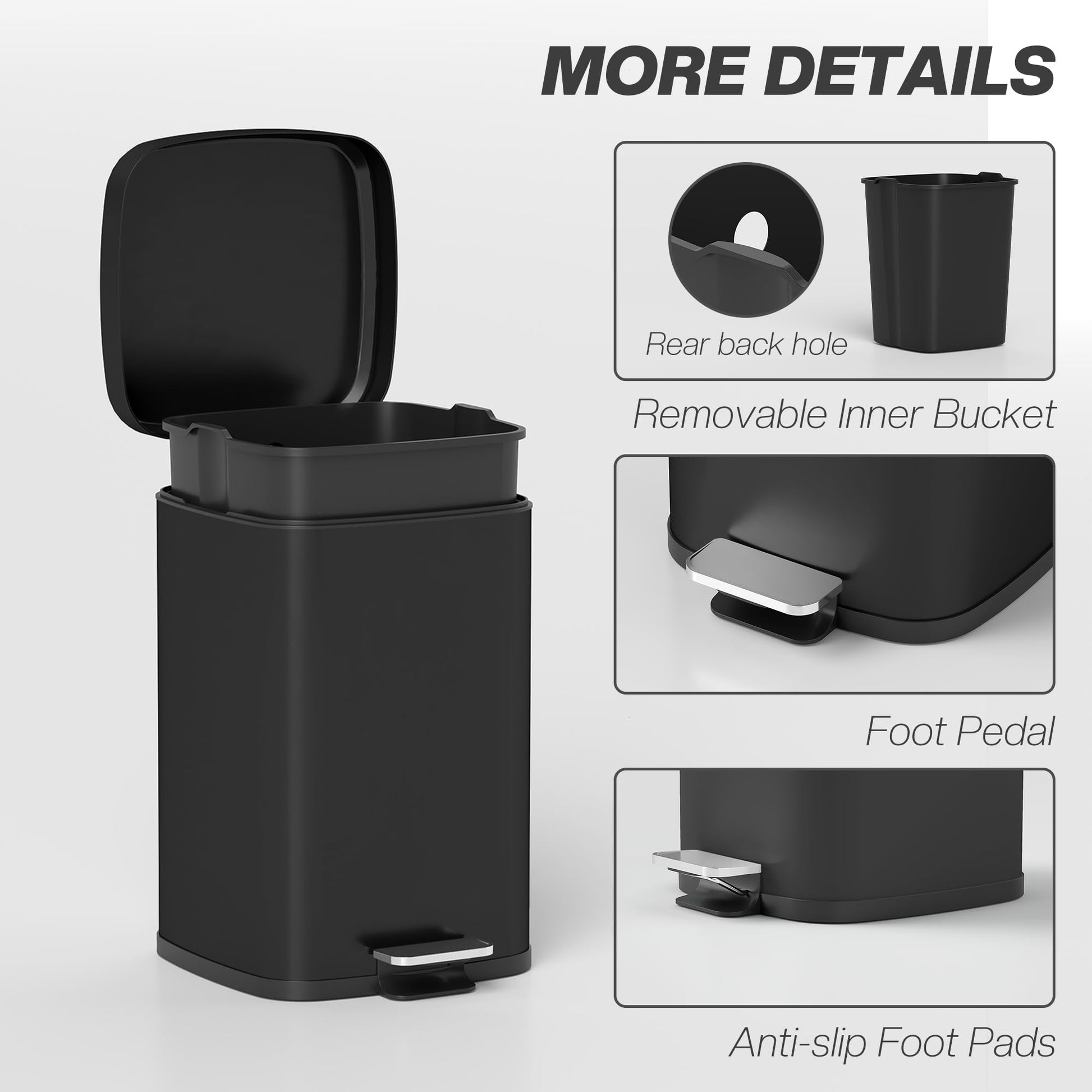 - Removable bucket: Easy to take out of this bin with lid. Paired with the stay-open lid, helps make cleaning easier.