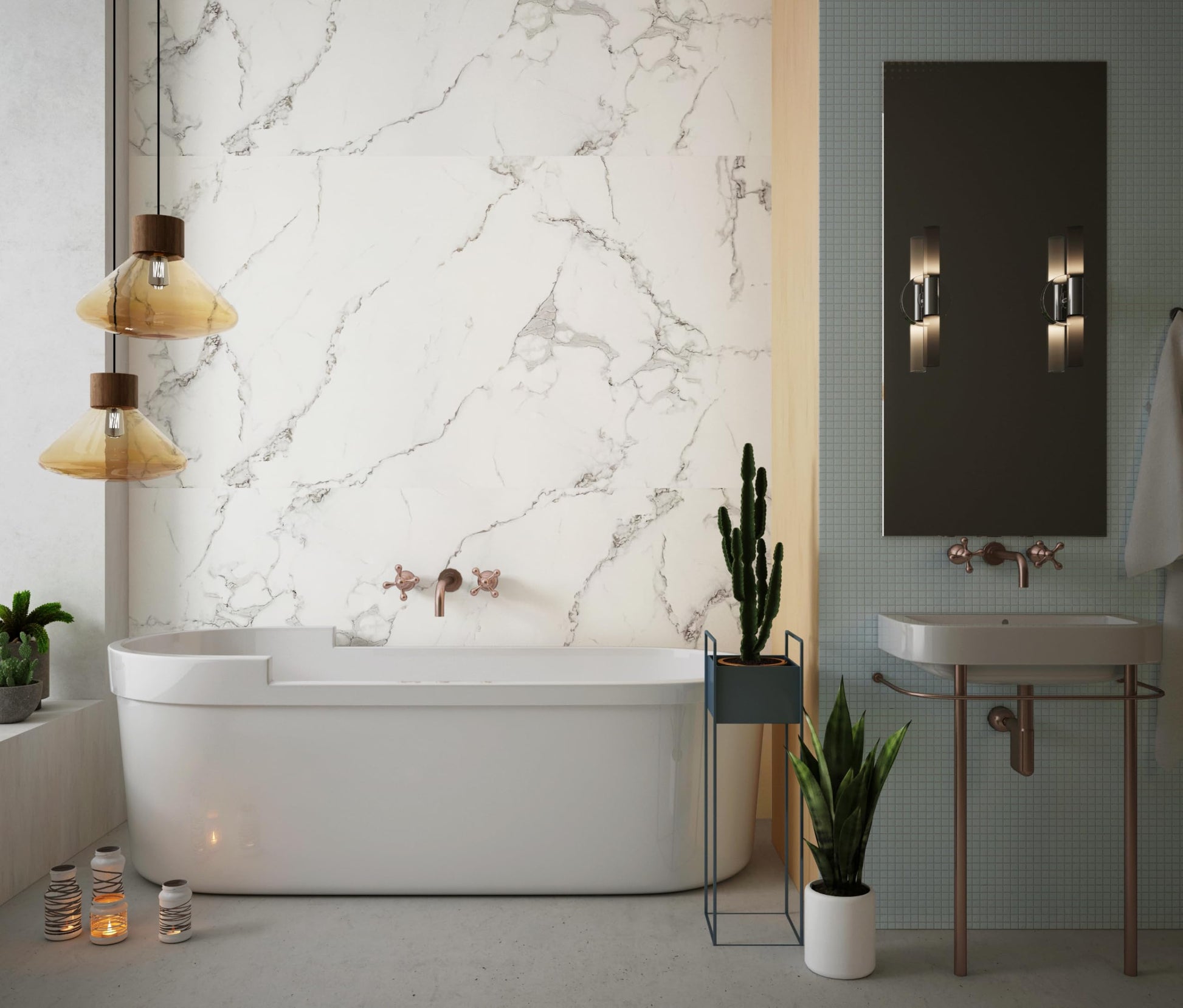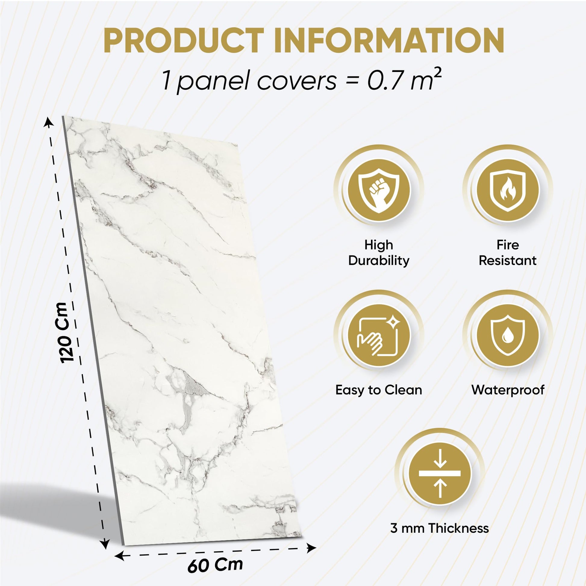 IZODEKOR Marble Look Cladding - 1Pc 120x60cm Panels for Bathroom, Kitchen & Bedroom, Alternative to Tiles, Shower Panels, Granite Effect PVC | Carrara