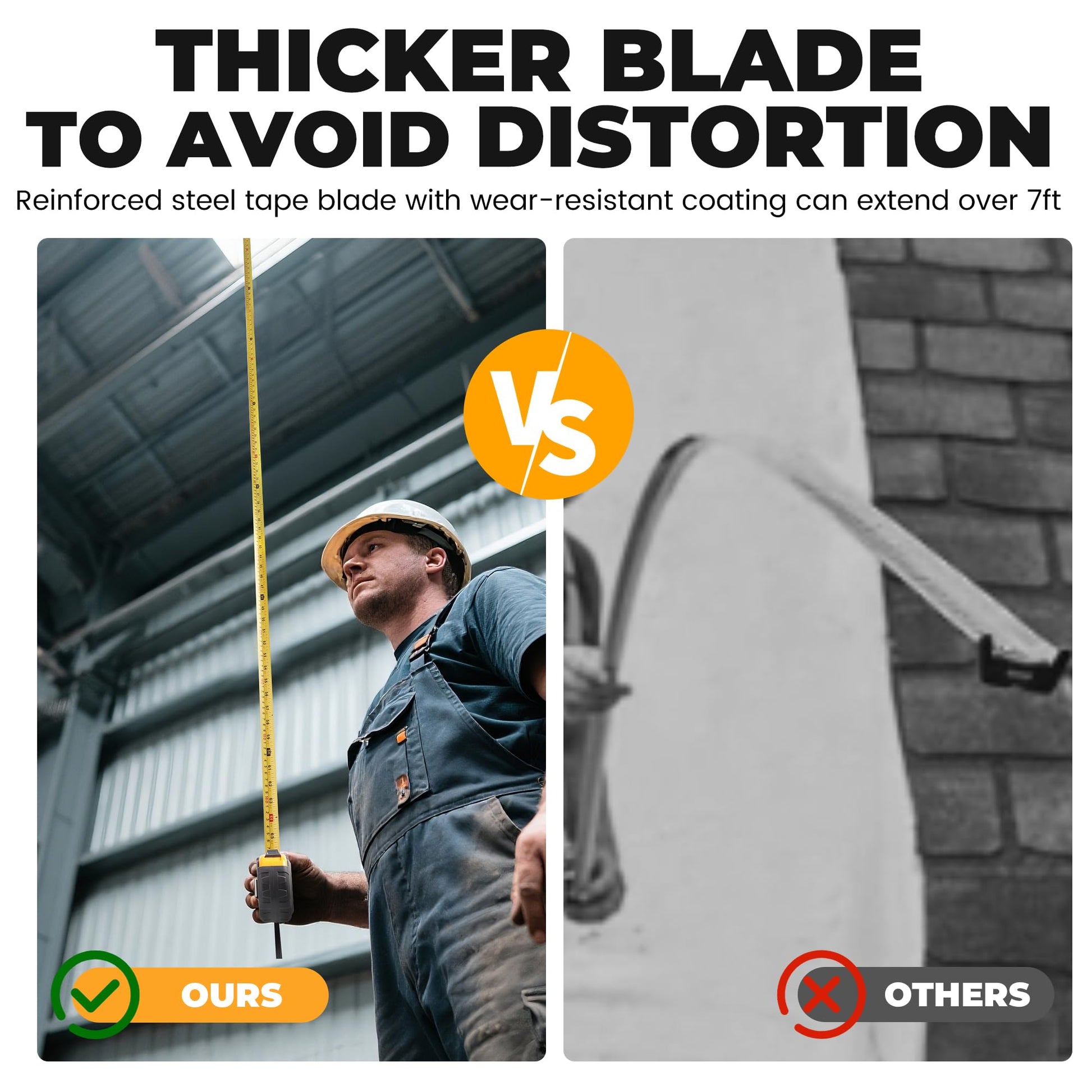 - ▲VERSATILE WITH MAGNETIC HOOK - This easy-to-read double sided electrician ruler metal measure tape with fraction can stick to any ferrous material with the powerful magnet tip, which greatly enhances the stability of the blade, especially when measuring a really long distance. The magnets are also strong enough to double the tape as a magnetic pick up tool. These make it a perfect tool for engineer, architect, etc.