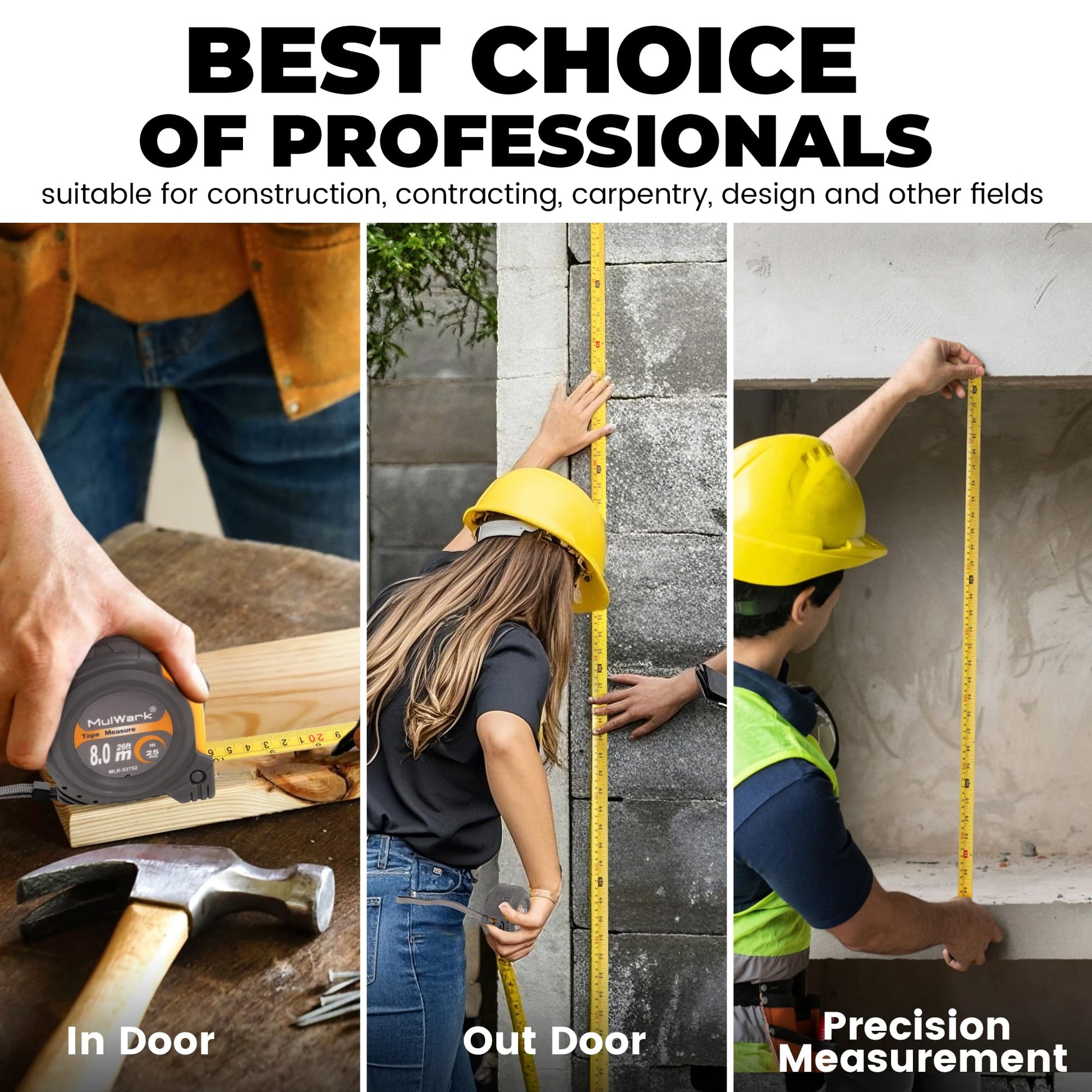 MulWark 8m/26ft Measuring Tape Measure | Metric & Imperial Dual Scale | Magnetic Hook & Wide Blade | Both-Side Metal Blade | Shockproof Case | for Construction, Carpentry & DIY