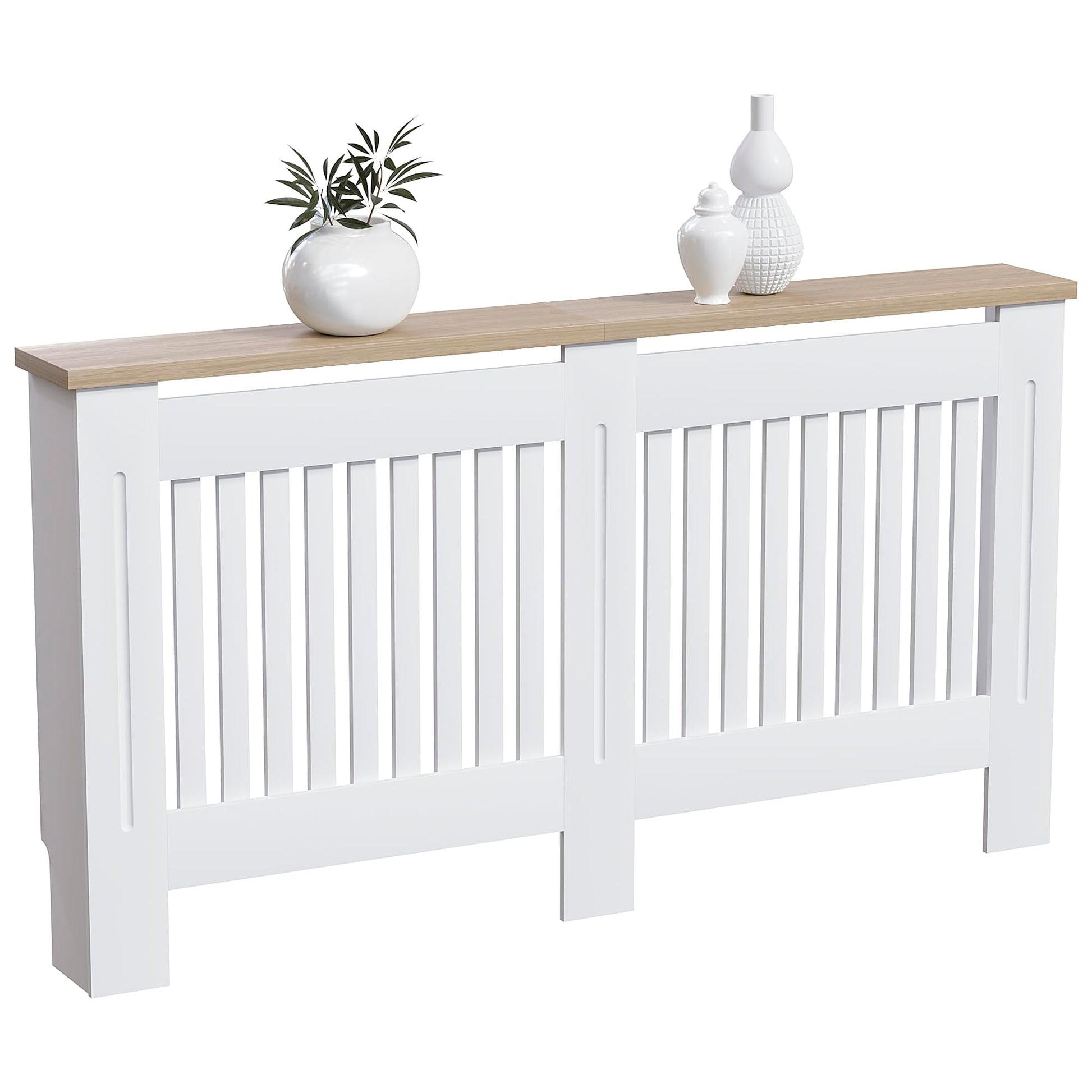Vida Designs Arlington Radiator Cover White - Large - Modern Shaker Style Vertical Slat Design For Optimal Heat Circulation - H83.3xW152xD19cm - Painted MDF Cabinet with Wood Top Shelf